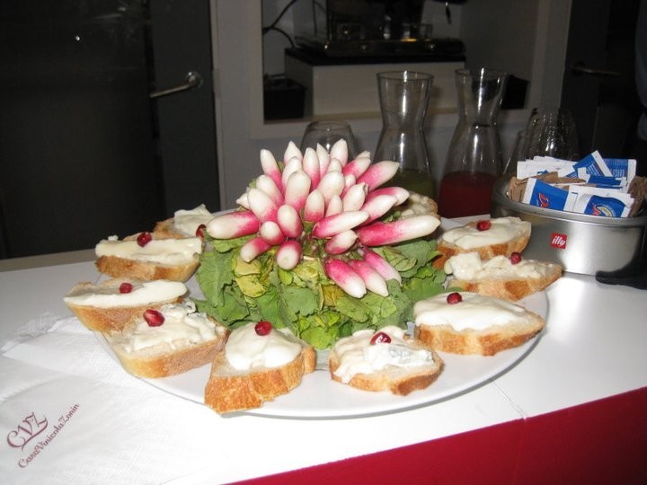 Realizziamo al momento piatti caldi come risotto al prosecco e melograno o con verdure di stagione e primi a piacere, tramezzini, stuzzichini di pastasfoglia, ecc...tutto rigorosamente espresso e fatto in loco. Proponiamo inoltre dolci fatti in casa.